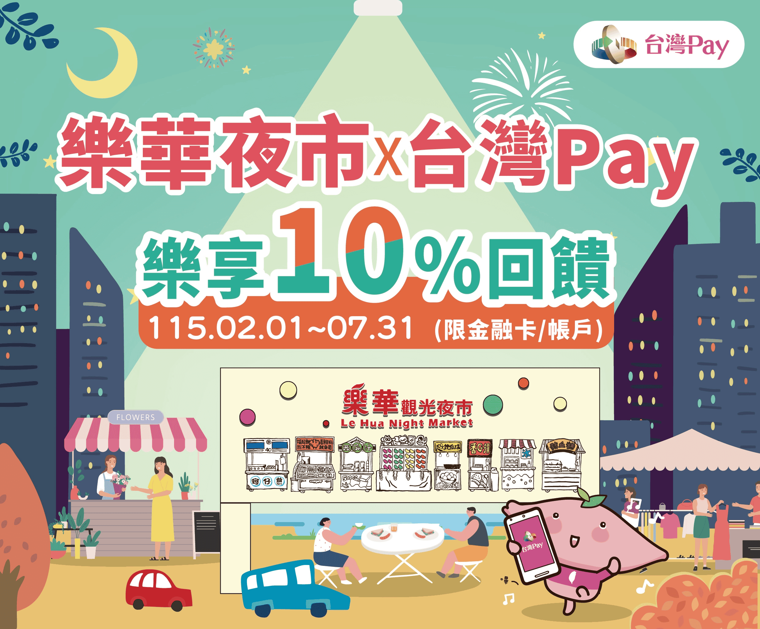 新北市「樂華夜市商圈」受理「台灣Pay」交易之指定店家,指定店家詳上海商銀活動官網,如有異動以上海商銀官網頁面公告為準,不另行通知。